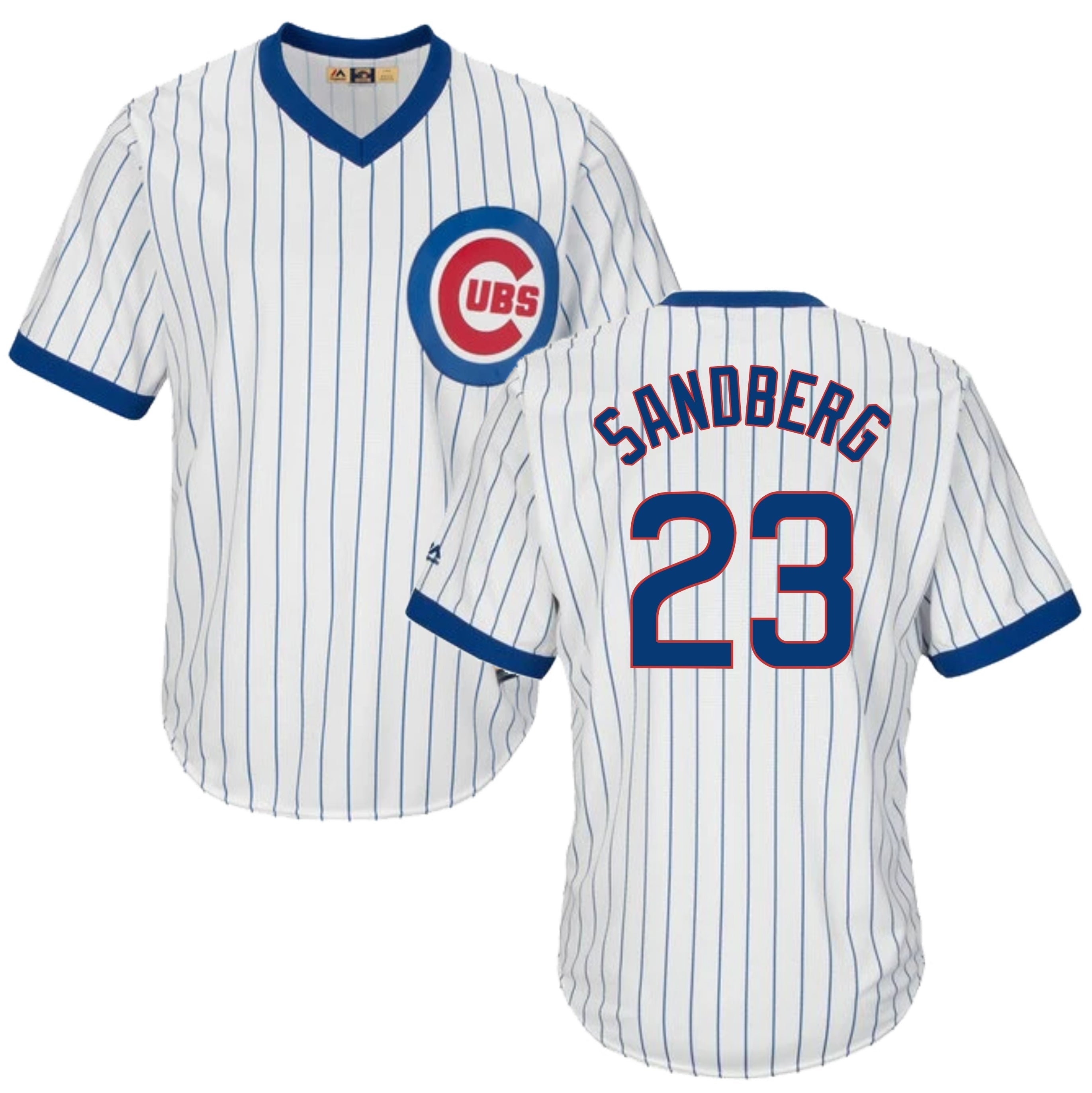 Ryne Sandberg Chicago Cubs Cooperstown White Pinstripe V-Neck Home Men's Jersey