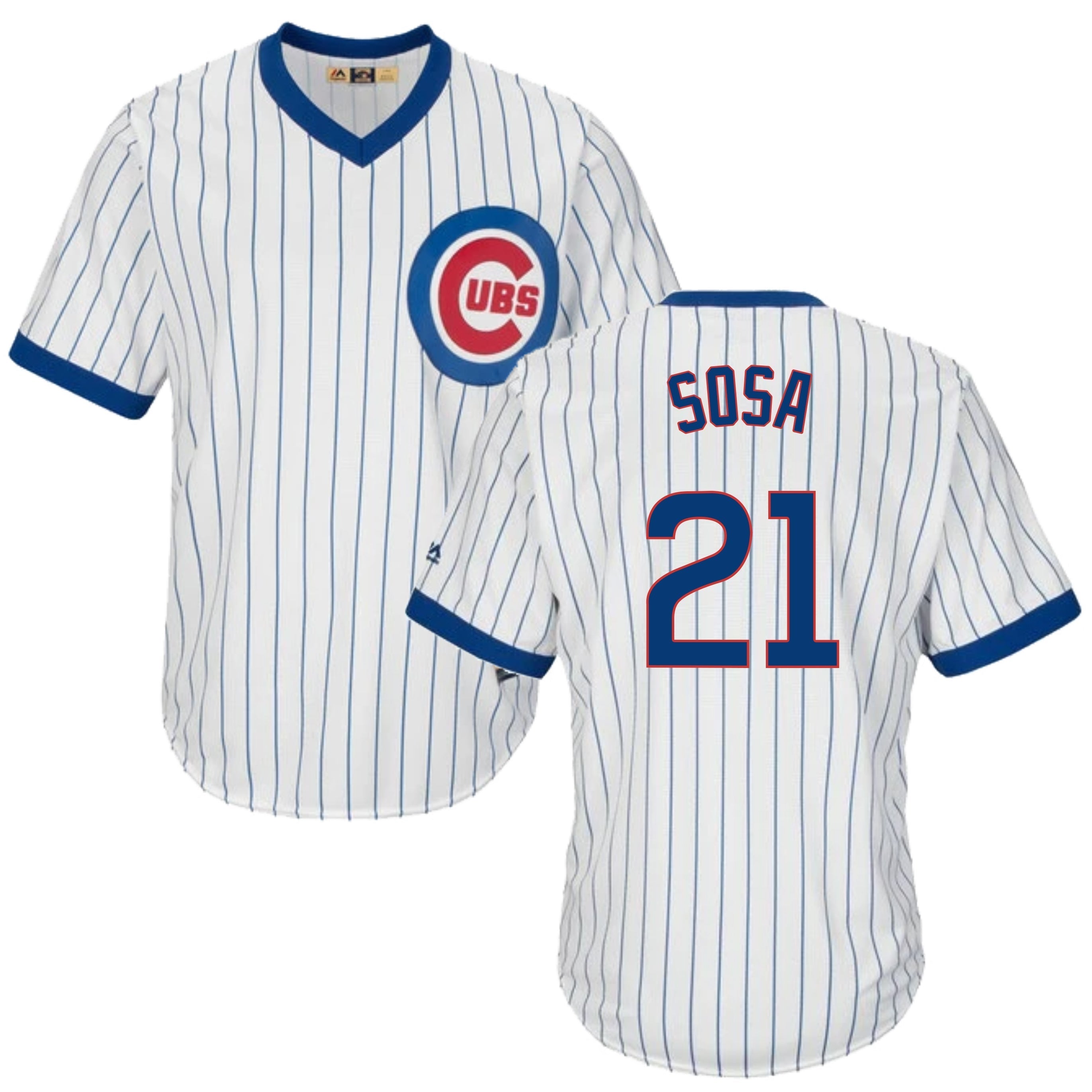Sammy Sosa Chicago Cubs Cooperstown White Pinstripe V-Neck Home Men's Jersey