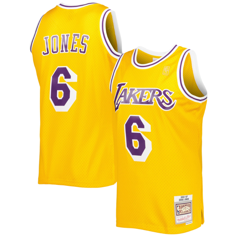 Men's Eddie Jones Los Angeles Lakers #6 Mitchell & Ness 1996-97 Hardwood Classics Swingman Player Jersey - Gold