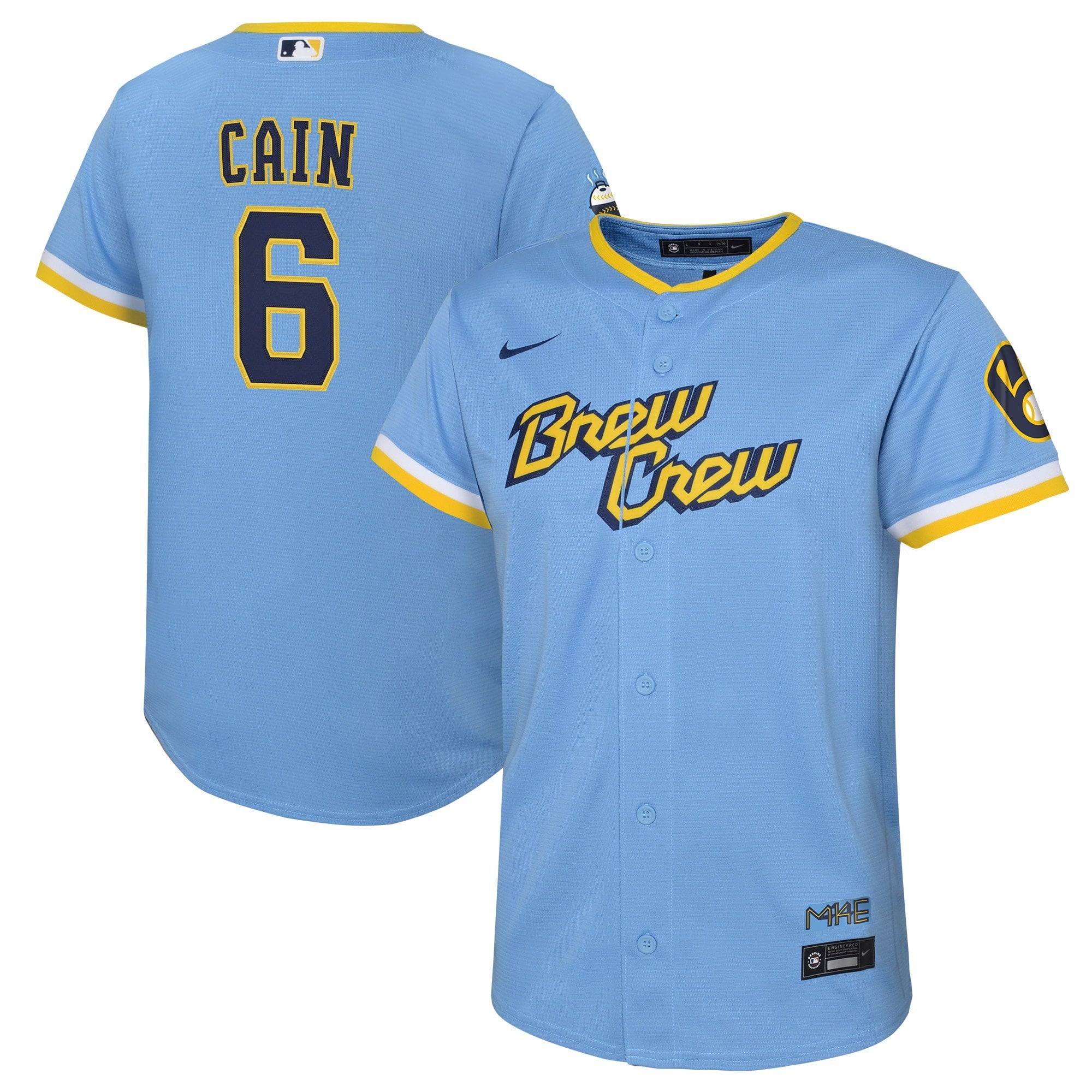 Youth Nike Lorenzo Cain Powder Blue Milwaukee Brewers 2022 City Connect Replica Player Jersey