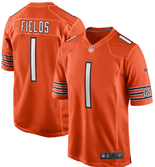 Chicago Bears Justin Fields Mens Orange Replica Game Jersey