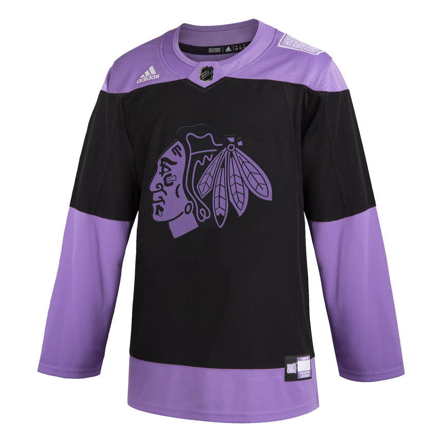 Men's Chicago Blackhawks Adidas Black/Lavendar 2019 Hockey Fights Cancer Authentic Blank Jersey